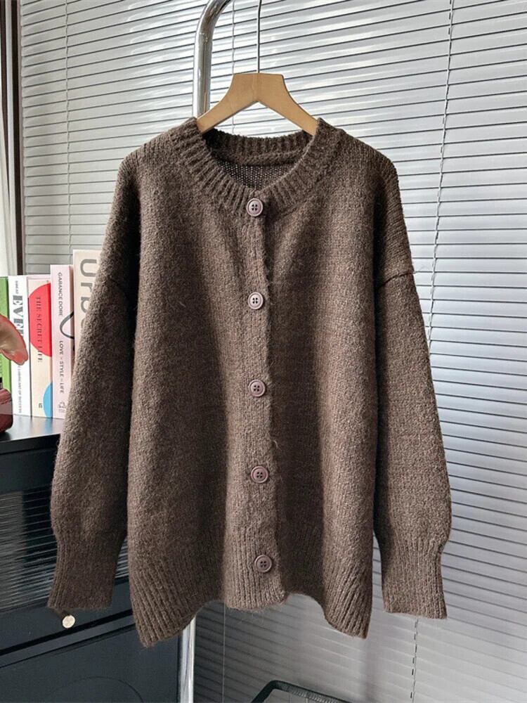 [EWQ] 長袖 O ネック シングルブレスト 長袖 レディース ニット カーディガン セーター コート アウター 秋冬 16U6001 ロング オータム 秋物 ウィンター 冬物 Oネック