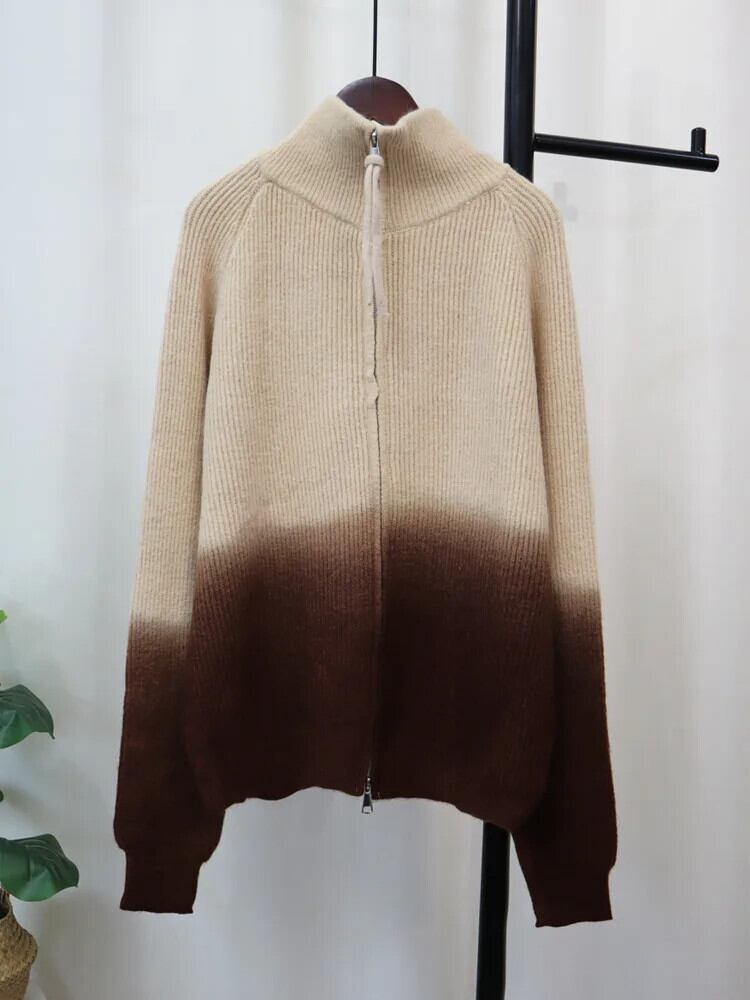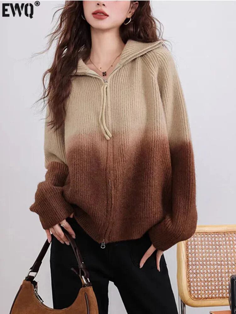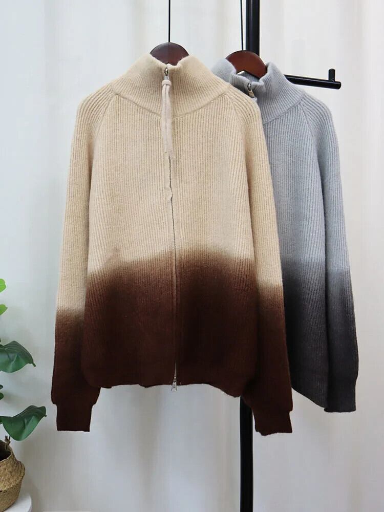 [EWQ] タートルネック ダブル ジッパー グラデーション カラーニット カーディガン セーター ルーズ コート ジャケット 秋冬 6U5996 オータム 秋物 ウィンター 冬物