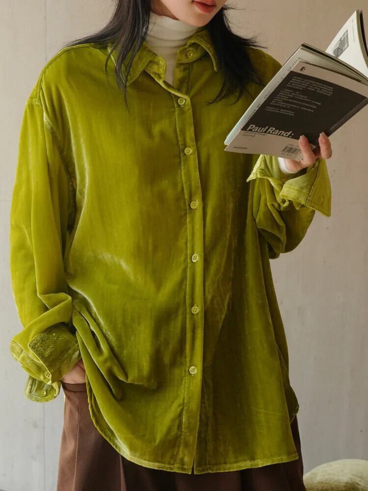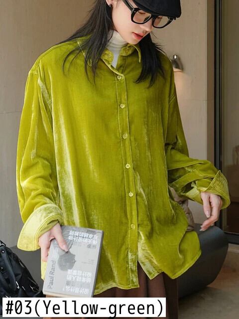 [EWQ] ベルベットシャツ長袖シングルブレストルーズ冬冬潮トップ 16U5061 ロング ウィンター 冬物