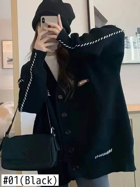 [EWQ] シングルブレスト V ネック長袖婦人カーディガン暖かいセーターコート秋冬 16U5932 ロング オータム 秋物 ウィンター 冬物 Vネック