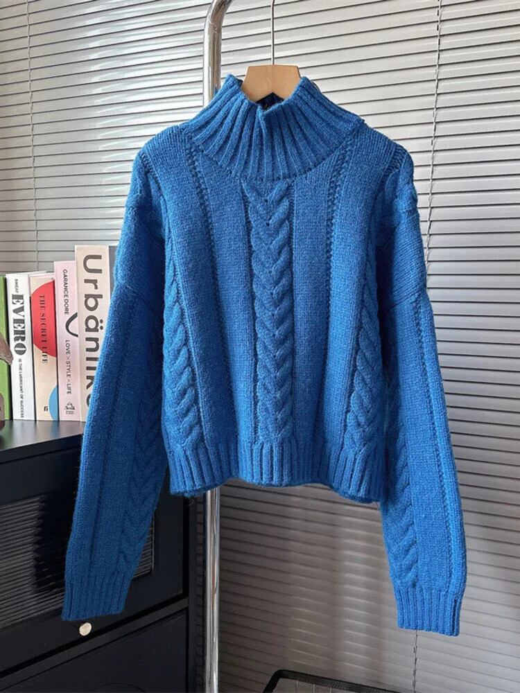 【EWQ】ハーフタートルネック オーバーサイズ ニット プルオーバー セーター ニット ジャンパー ツイスト ストライプ きれいめ トップス 秋冬 16U6382 オータム 秋物 ウィンター 冬物