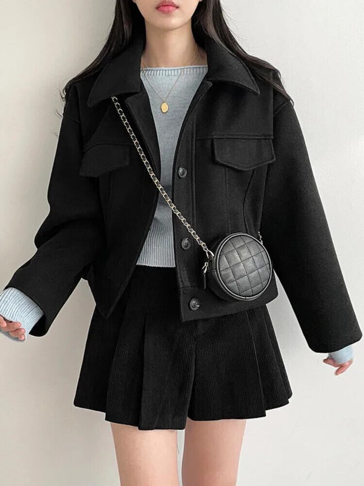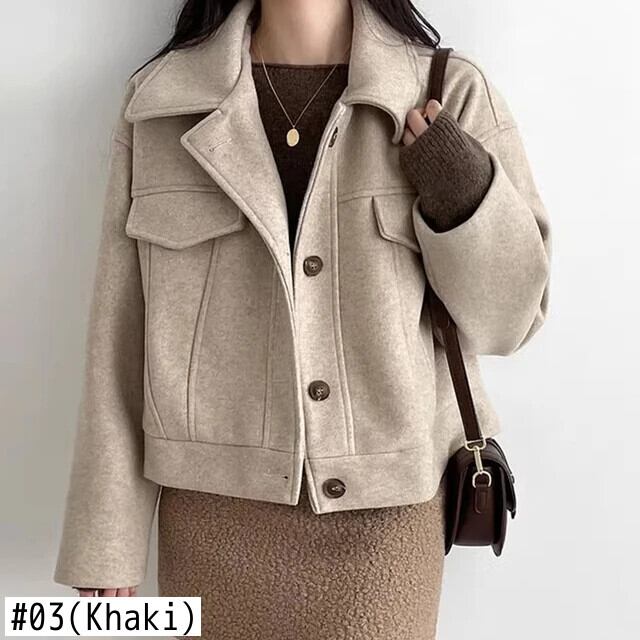 [EWQ] マルチソリッドカラーラペルシングルブレストルーズオールマッチショートウールコートジャケット秋冬 16U6500 オータム 秋物 ウィンター 冬物
