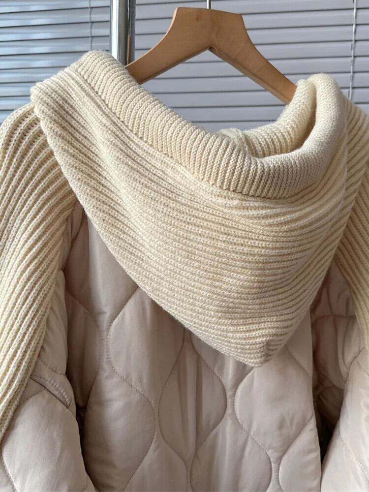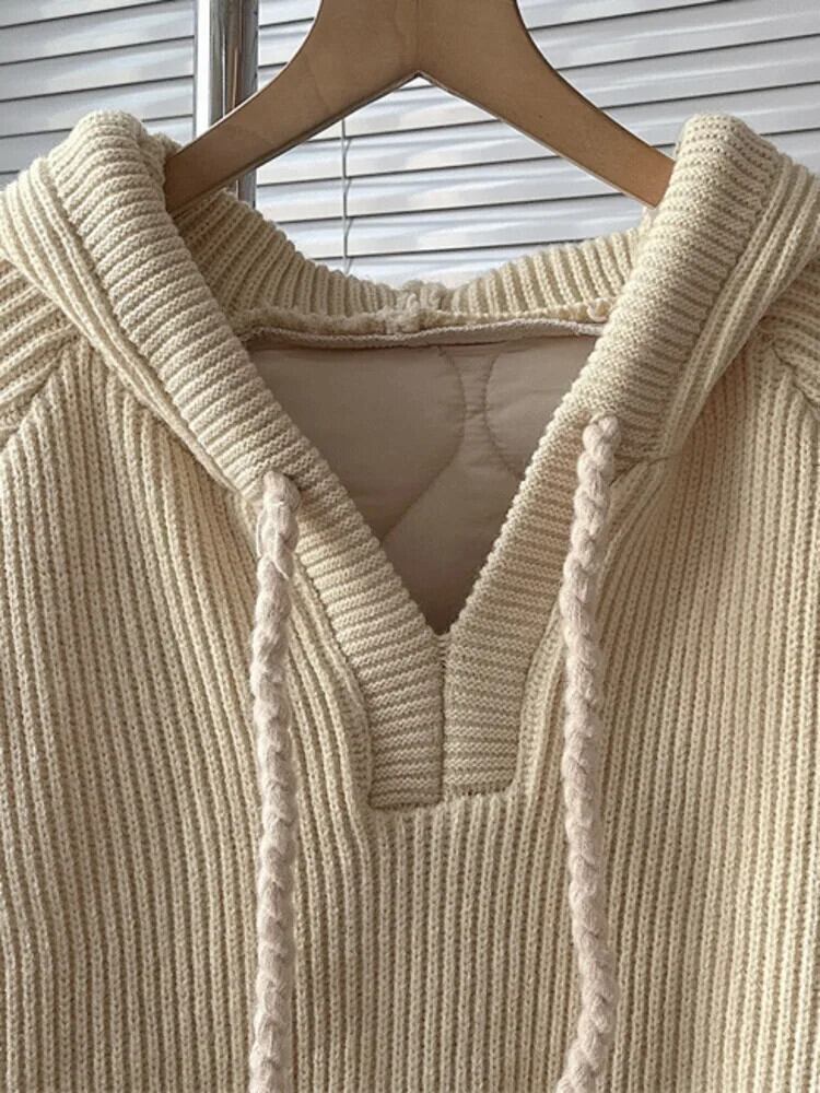 [EWQ] フード付き巾着ニットセーター スプライスエンボスプルオーバー 中綿コート 秋冬 U6386 コットン オータム 秋物 ウィンター 冬物