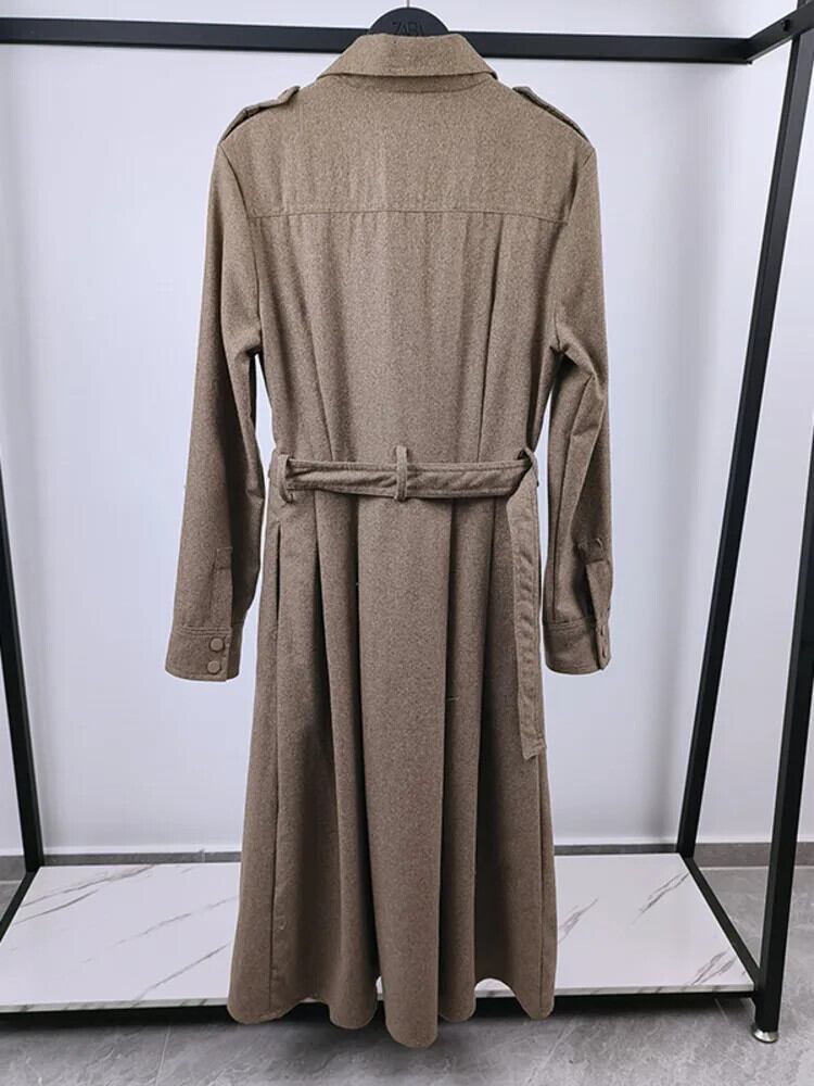 [EWQ] ラペルシングルブレストウエストベルトポケットシャツドレス長袖秋冬 16U6376 ロング オータム 秋物 ウィンター 冬物 ハーネス