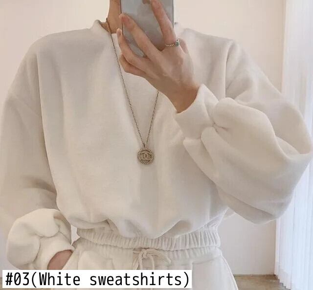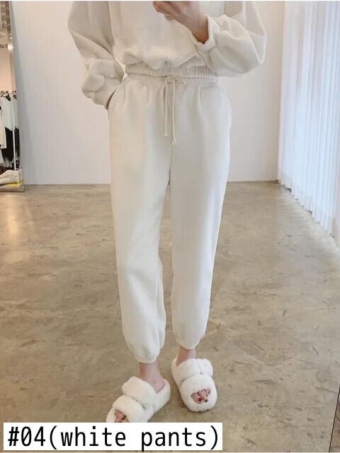 色:01(黒のスウェットシャツ),02(黒パンツ),03(白トレーナー),04(白パンツ),05(コーヒースウェット),06(コーヒーパンツ),07(ブルートレーナー),08(ブルーパンツ)