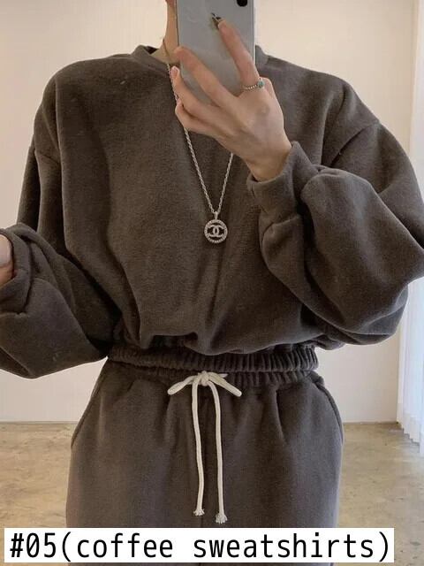 [EWQ] Thickwarmth ツーピースセット長袖スウェットシャツ + 弾性巾着ルーズパンツ秋冬 U51 ロング エラスティック 伸縮 オータム 秋物 ウィンター 冬物