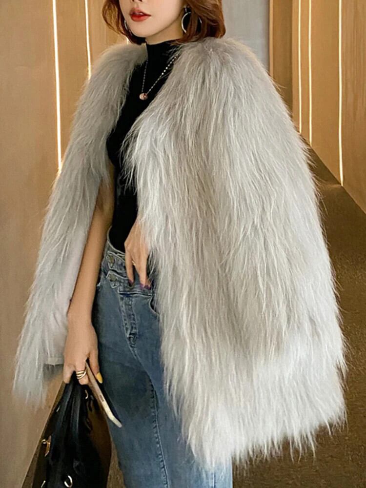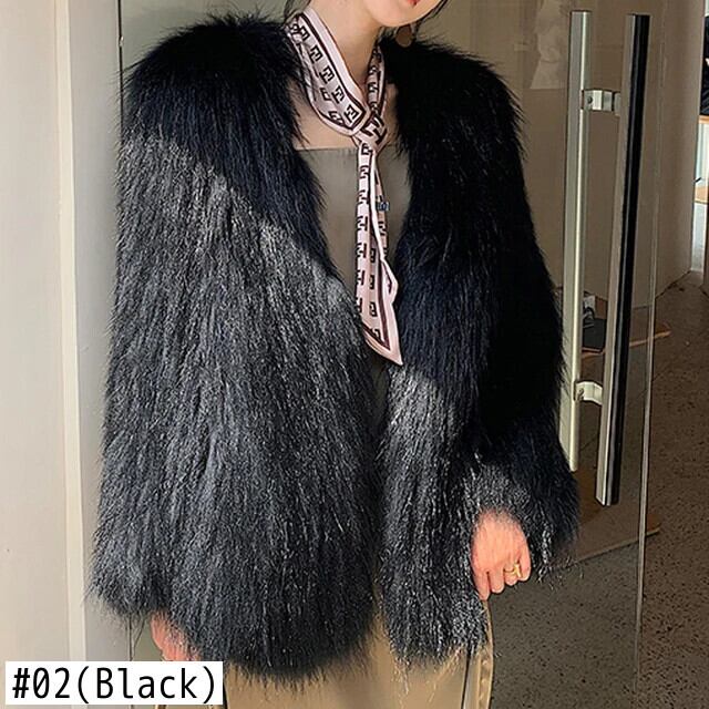 [EWQ] シンプル長袖ホワイトグレーフェイクフォックスファーカーディガンコート秋冬フェイクシープスキンジャケット 16U5948 ロング オータム 秋物 ウィンター 冬物