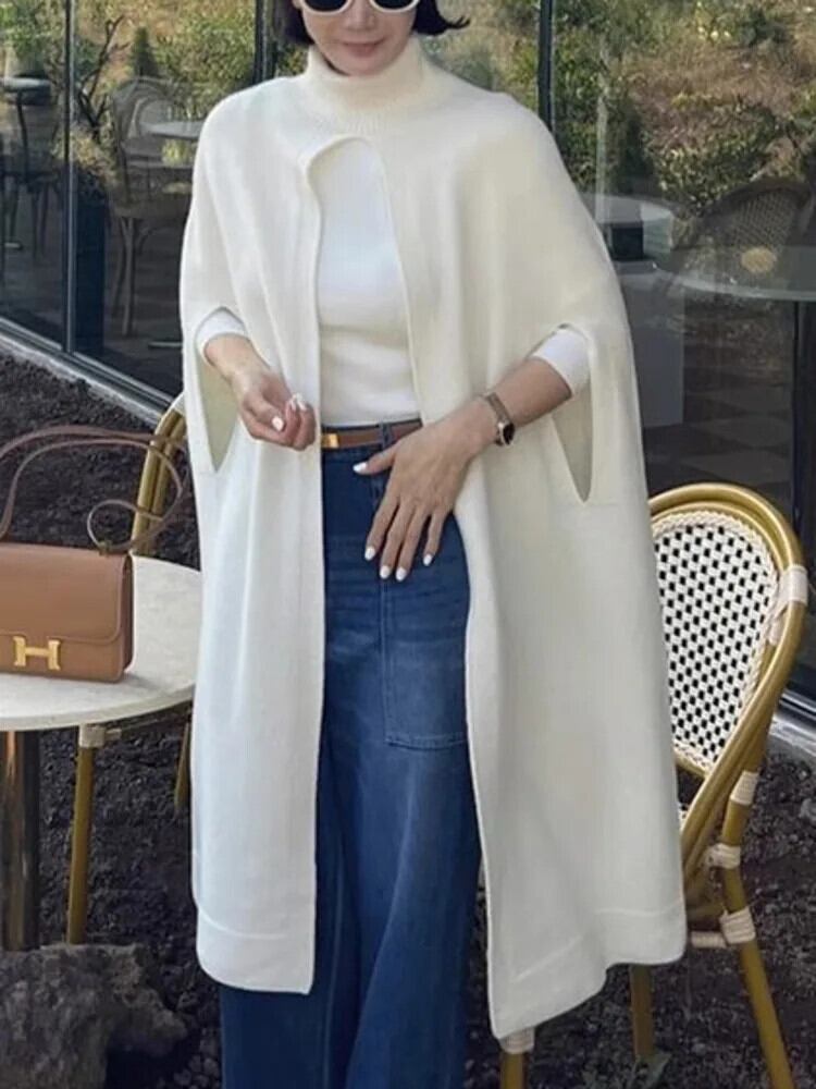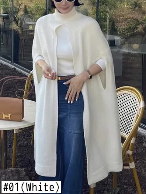 [EWQ] タートルネック 五分袖 ケープスタイル ゆったり オールマッチ ミドル丈 レディース ニット セーター 秋冬 U5957 半袖 ハーフスリーブ オータム 秋物 ウィンター 冬物