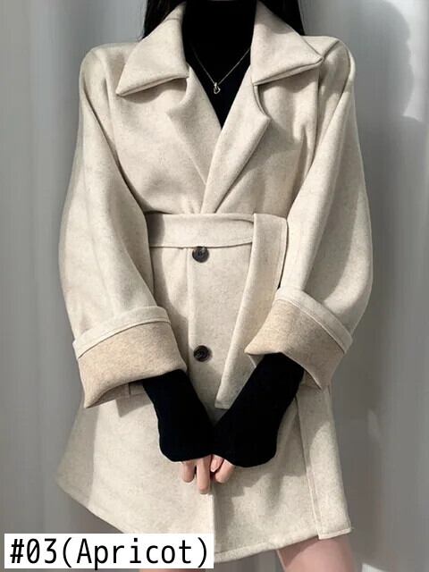 [EWQ] スーツ襟シングルブレストレースアップウエストスリム長袖ウールジャケット秋冬 U6876 ロング オータム 秋物 ウィンター 冬物