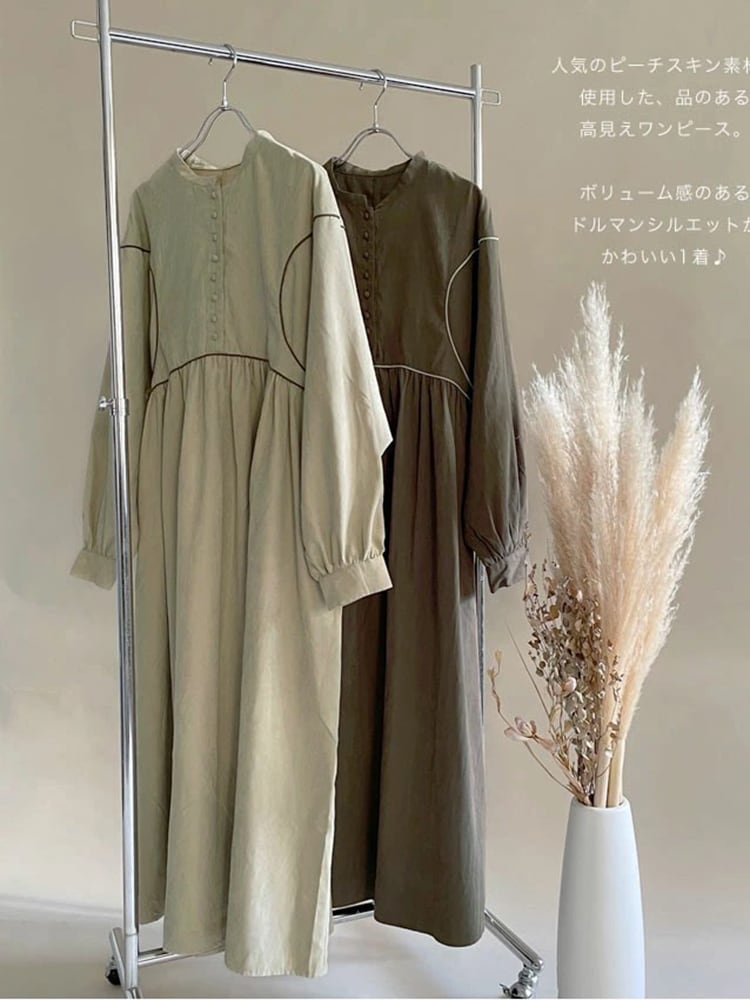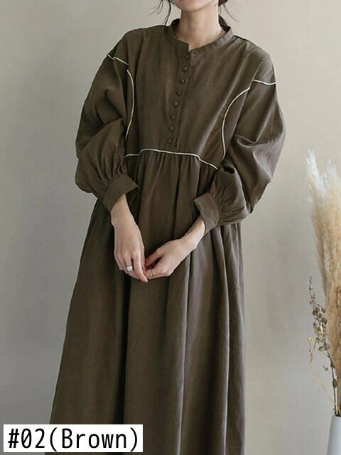 [EWQ]シックスタンドネックシングルブレスト長袖コントラストカラーゆったり長袖ワンピース秋冬 ロング オータム 秋物 ウィンター 冬物