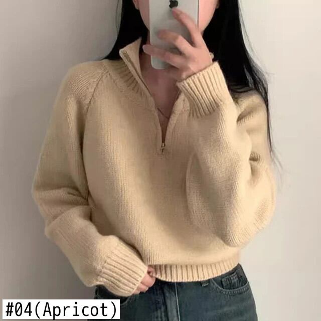 [EWQ] シンプル オールマッチ ジッパー スタンドカラー ジャンパー 無地 長袖 ニット プルオーバー セーター 秋冬 U6801 ロング オータム 秋物 ウィンター 冬物 ソリッドカラー