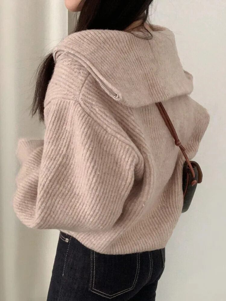 [EWQ] ダブルジッパー ニット カーディガン セーター コート シンプル オールマッチ 長袖 レディース 秋冬 16U6664 ロング オータム 秋物 ウィンター 冬物
