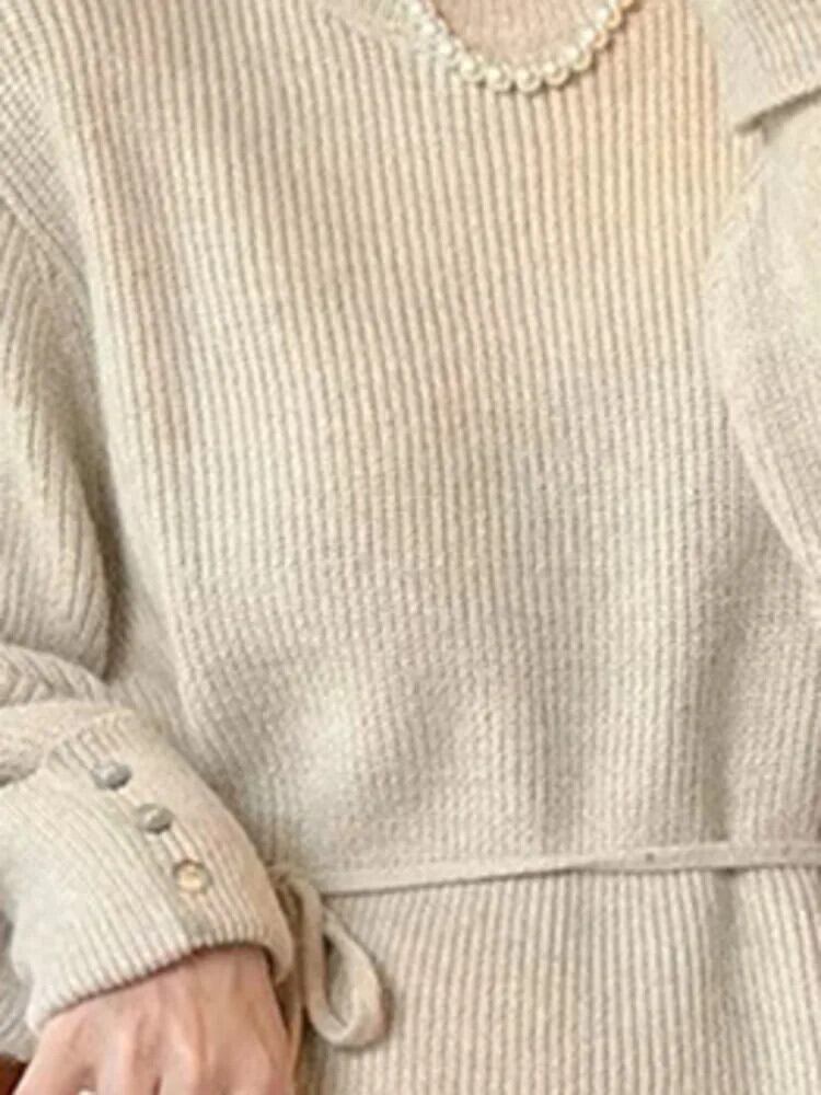 [EWQ] Oネック長袖巾着ニットプルオーバーセーターレディースゆったり厚手暖かいジャンパートップス秋冬16U6566 ロング オータム 秋物 ウィンター 冬物