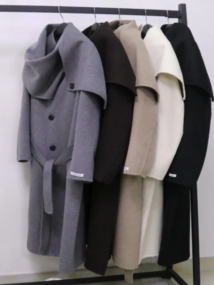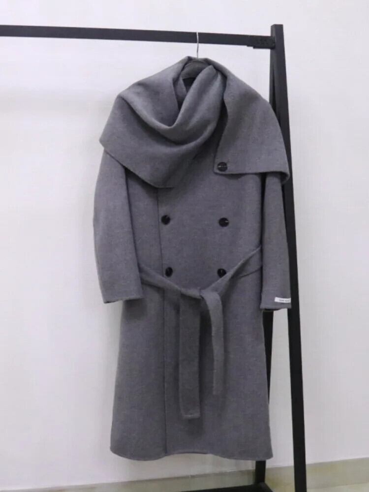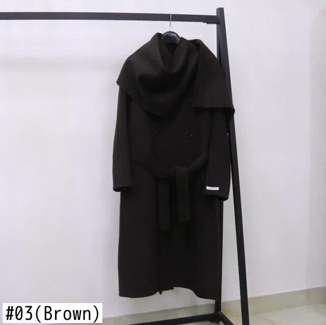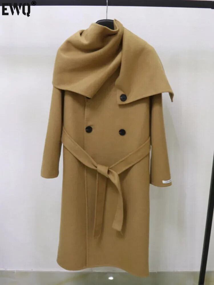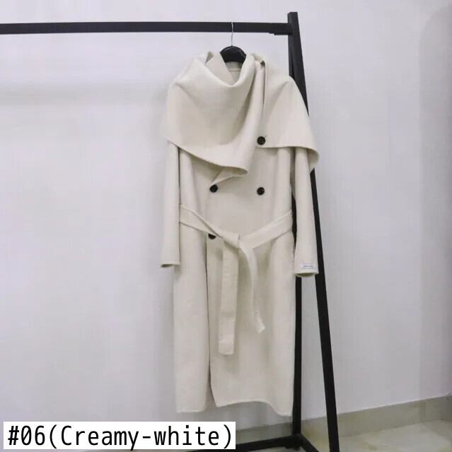 【EWQ】両面ウールカシミヤコート 大判スカーフ ロングベルベットボタン ウール アウター 秋冬 16U6904 オータム 秋物 ウィンター 冬物