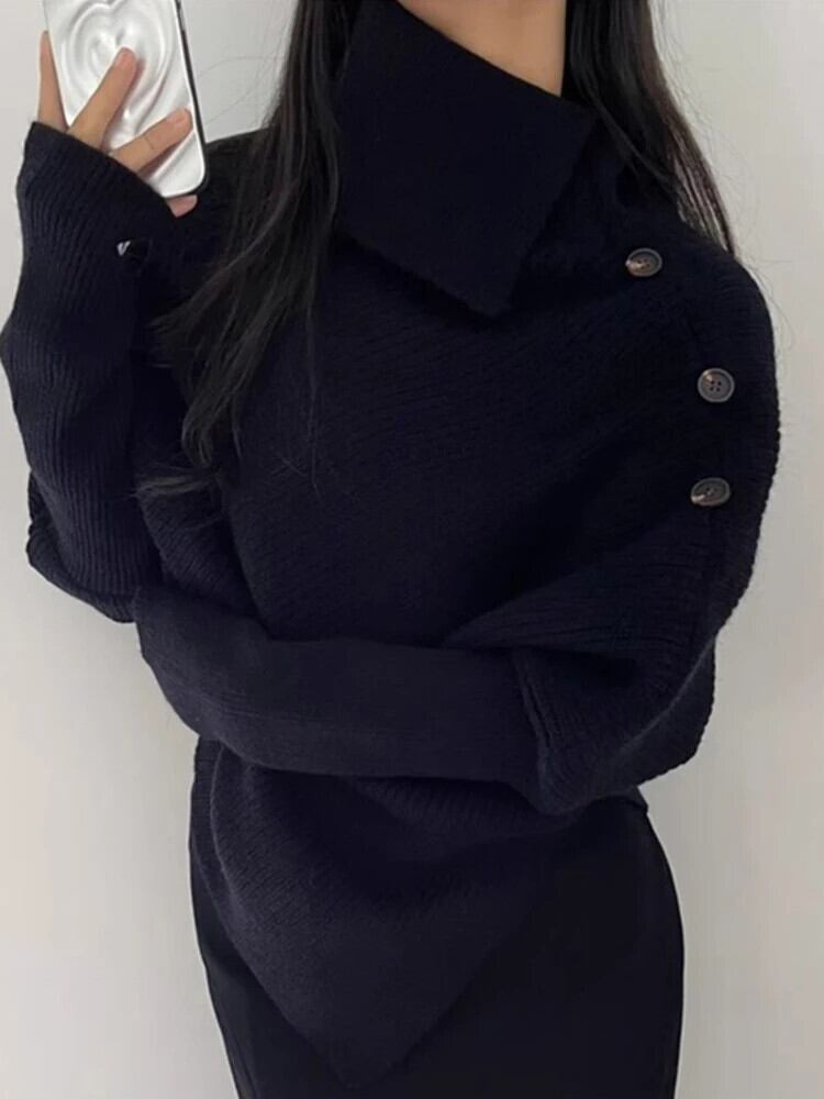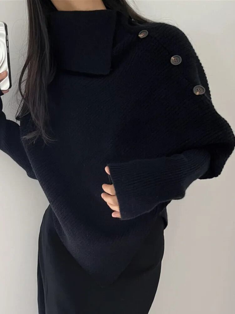 [EWQ] タートルネック不規則オールマッチボタンニットベーシックプルオーバーセーターニットジャンパー秋冬 16U6798 オータム 秋物 ウィンター 冬物