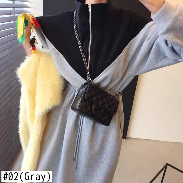[EWQ] スタンドカラーコントラストカラー巾着ウエストスリム長袖トレーナードレス秋冬 16U6948 ロング オータム 秋物 ウィンター 冬物