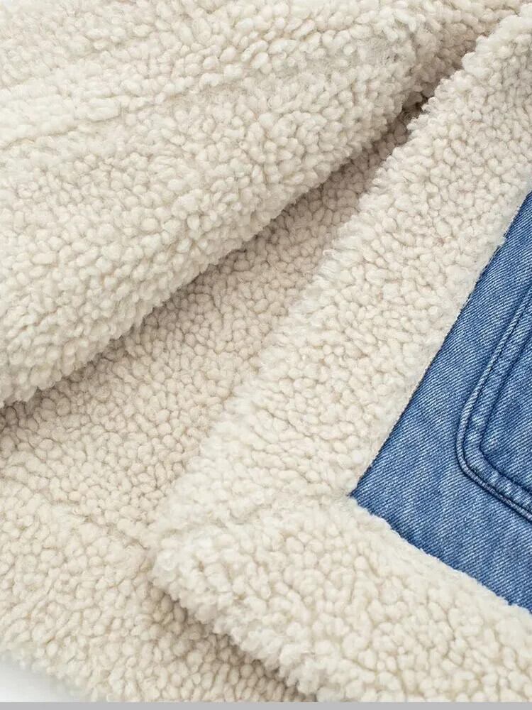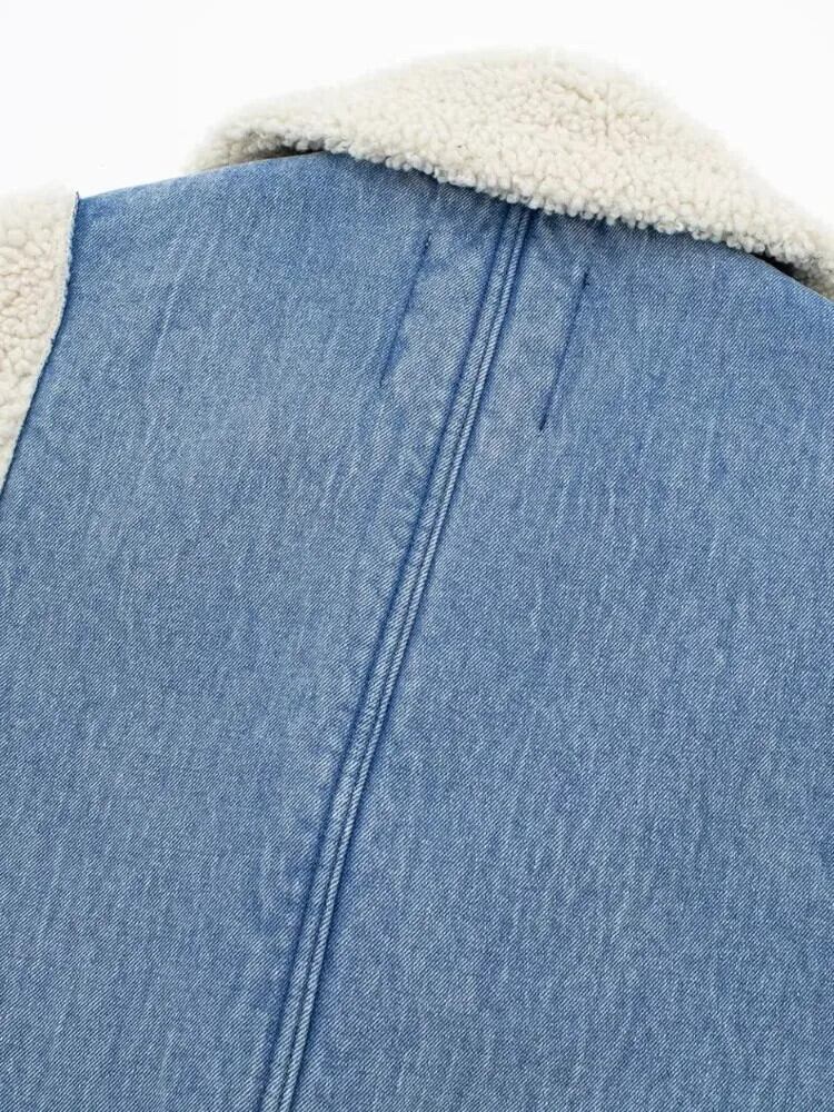 [EWQ] ノースリーブ ラペルネック コントラストカラー デニム ポケット 両面 レディース 厚手 暖かい カーディガン ベスト 秋冬 16U6018 オータム 秋物 ウィンター 冬物
