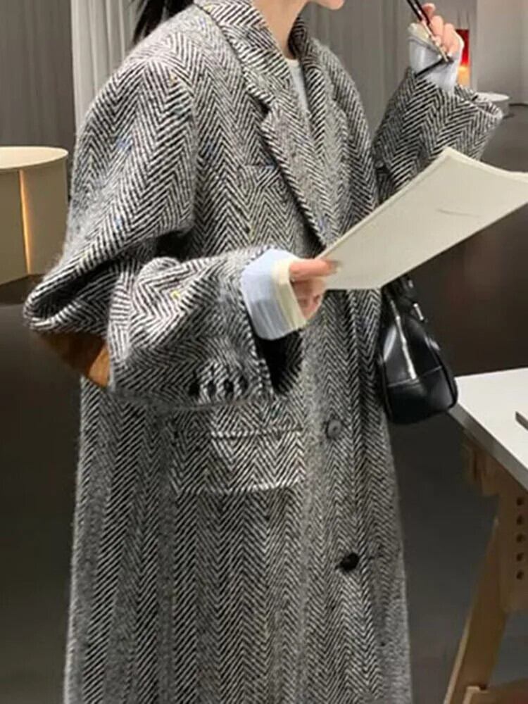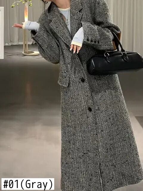 [EWQ] 気質ノッチカラーストライプウールコートエンド長袖ルーズコート秋 23A4593 ロング オータム 秋物