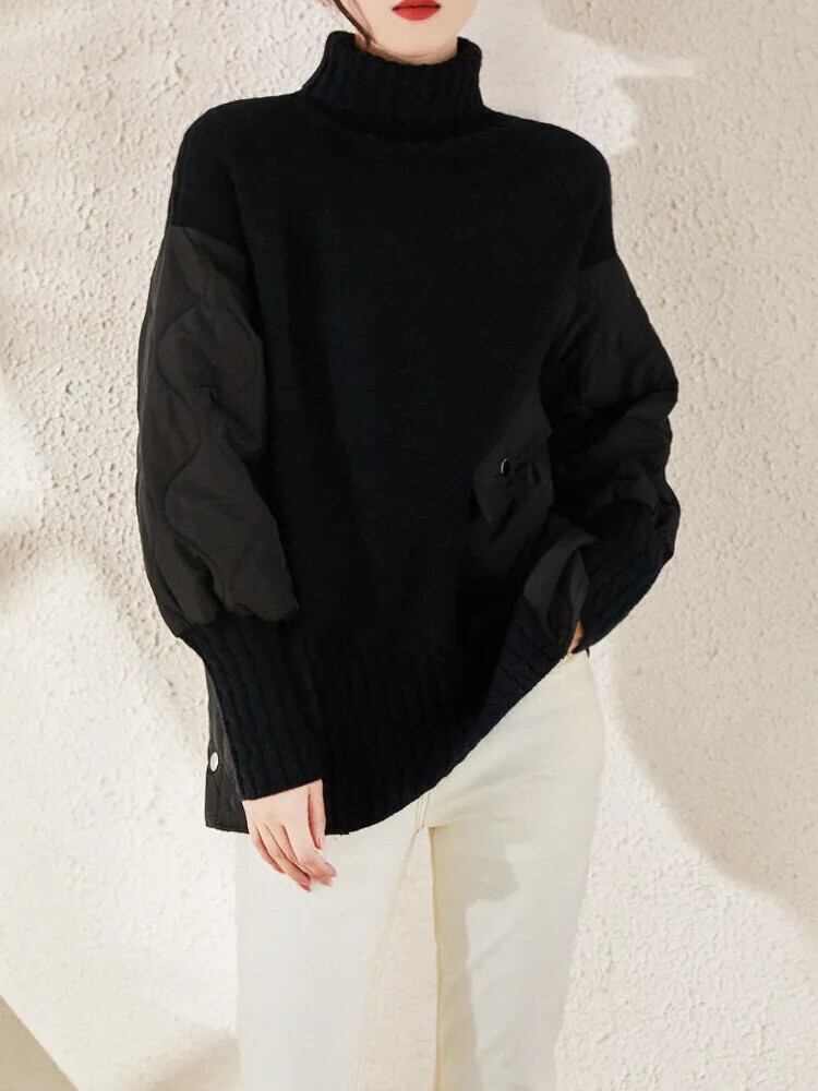 [EWQ] スタイルタートルネックルーズニットセーターパッチワークポケット肥厚トップ 2024 春秋 16U6740 スプリング 春物 オータム 秋物