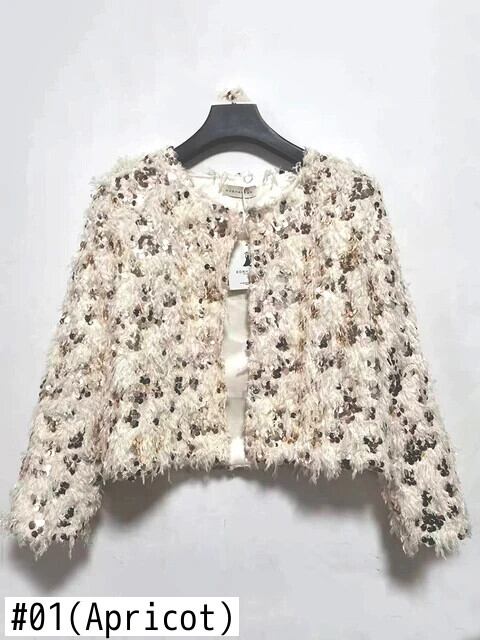 [EWQ] Oネック シングルブレスト キラキラ スパンコール テル ショート ジャケット レディース 長袖 コート トップス 秋冬 16U6636 ロング オータム 秋物 ウィンター 冬物
