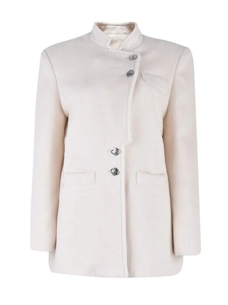 [EWQ] 気質スタンドカラーシングルブレストウールコートオフィスレディルーズジャケット 2024 春潮 23A4391 スプリング 春物 会社 学校 通勤や通学にも