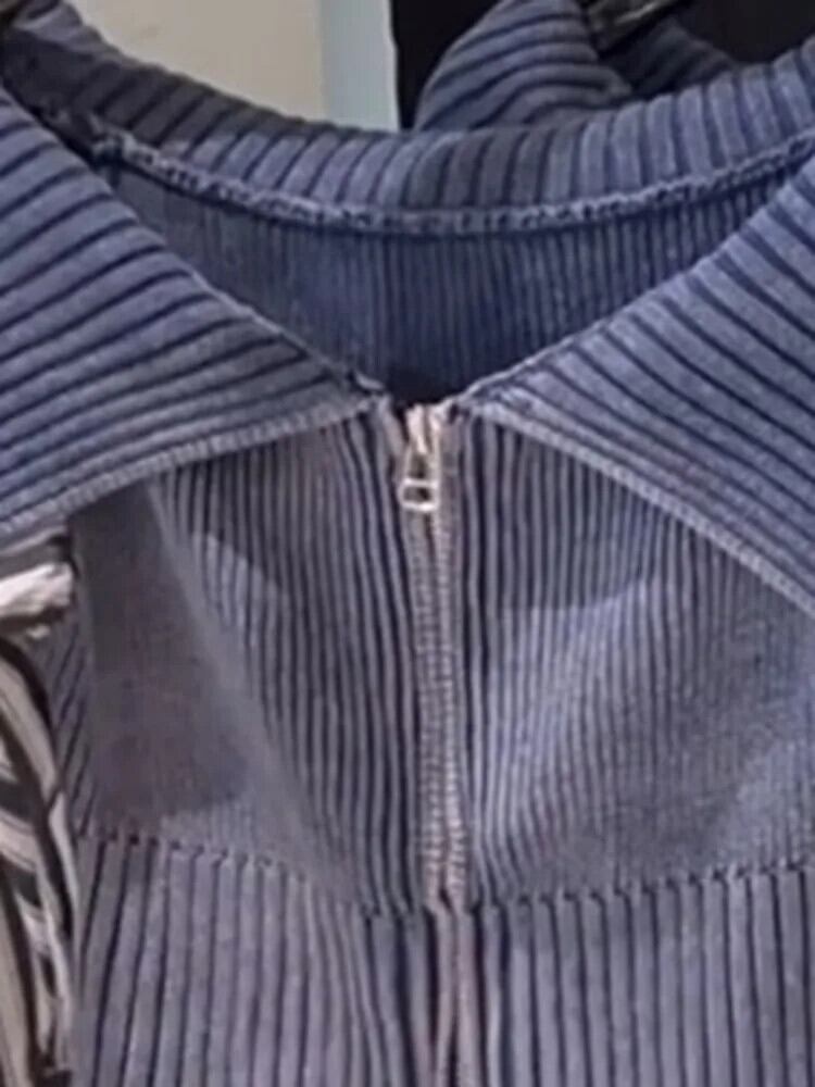 [EWQ] ジッパーコントラストカラーストライプ大きラペルニットカーディガンセーターコートジャケット秋 2024 春 A6109 スプリング 春物 オータム 秋物