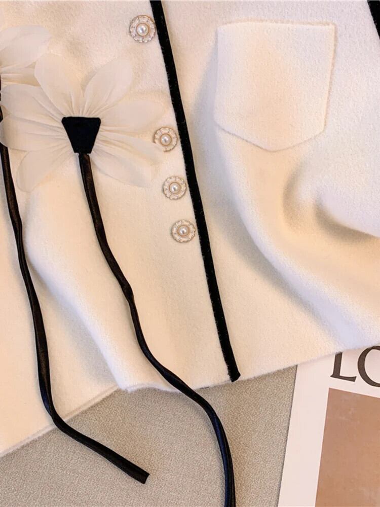 [EWQ] ストリート三次元花 O ネックシングルブレストニットカーディガンベストトップ秋冬 U6806 オータム 秋物 ウィンター 冬物 Oネック フラワーデザイン