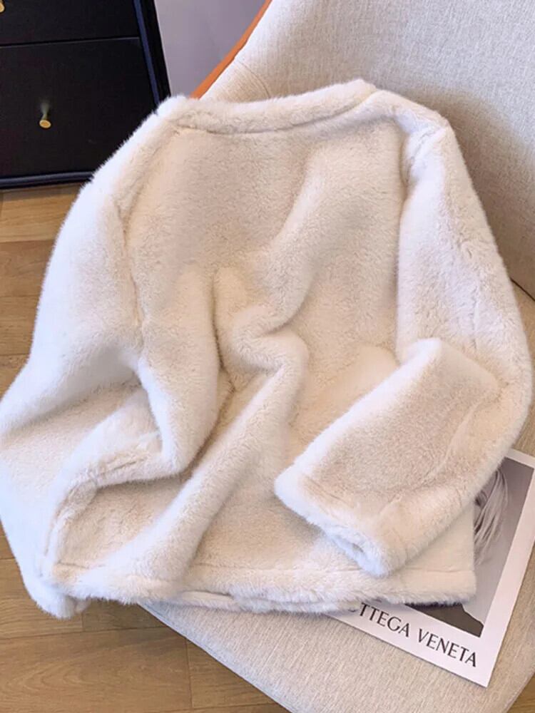 [EWQ] フェイクミンクカシミヤファーレディースコート厚くて暖かい毛皮ようVネックダブルブレストジャケットトップ秋冬16U6781 オータム 秋物 ウィンター 冬物