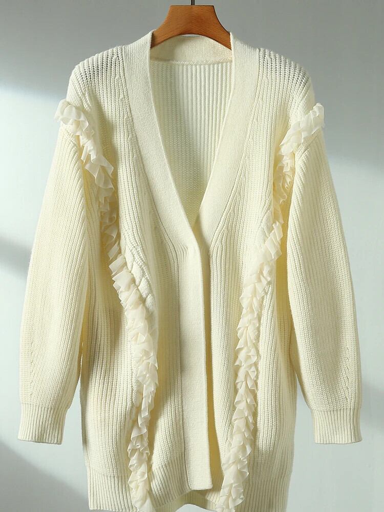 [EWQ] ウール 食用樹菌エッジ カーディガン ニット セーター ゆったり レディース ニット トップス 2024 春夏 16U7018 スプリング 春物 ウィンター 冬物