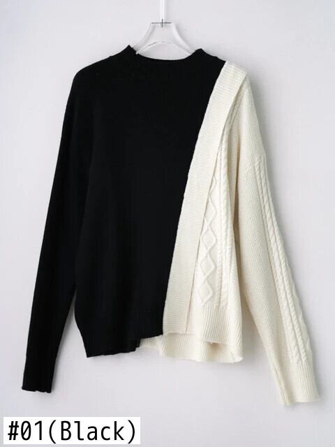 [EWQ] コントラスト ツイスト セーター レディース 長袖 O ネック 厚手 暖か プルオーバー ニット トップス 秋冬 16U5237 ロング オータム 秋物 ウィンター 冬物 Oネック