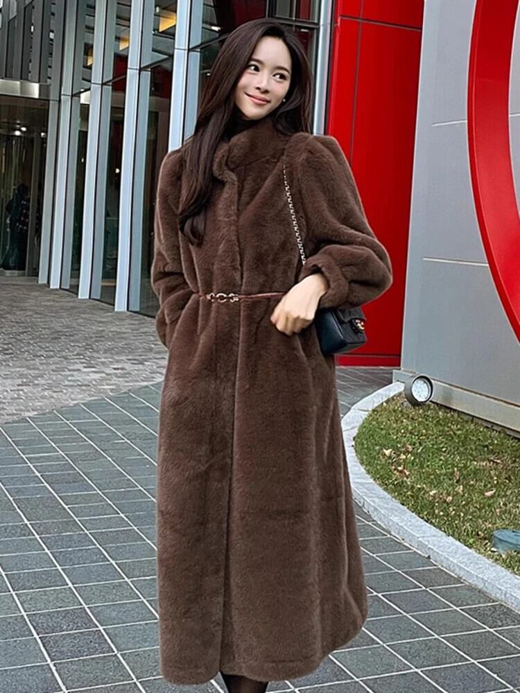 [EWQ] レディース スタンドカラー フェイクミンクファー ゆったり 厚手 暖かい コート シングルブレスト アウター レディース 秋冬 U6805 オータム 秋物 ウィンター 冬物
