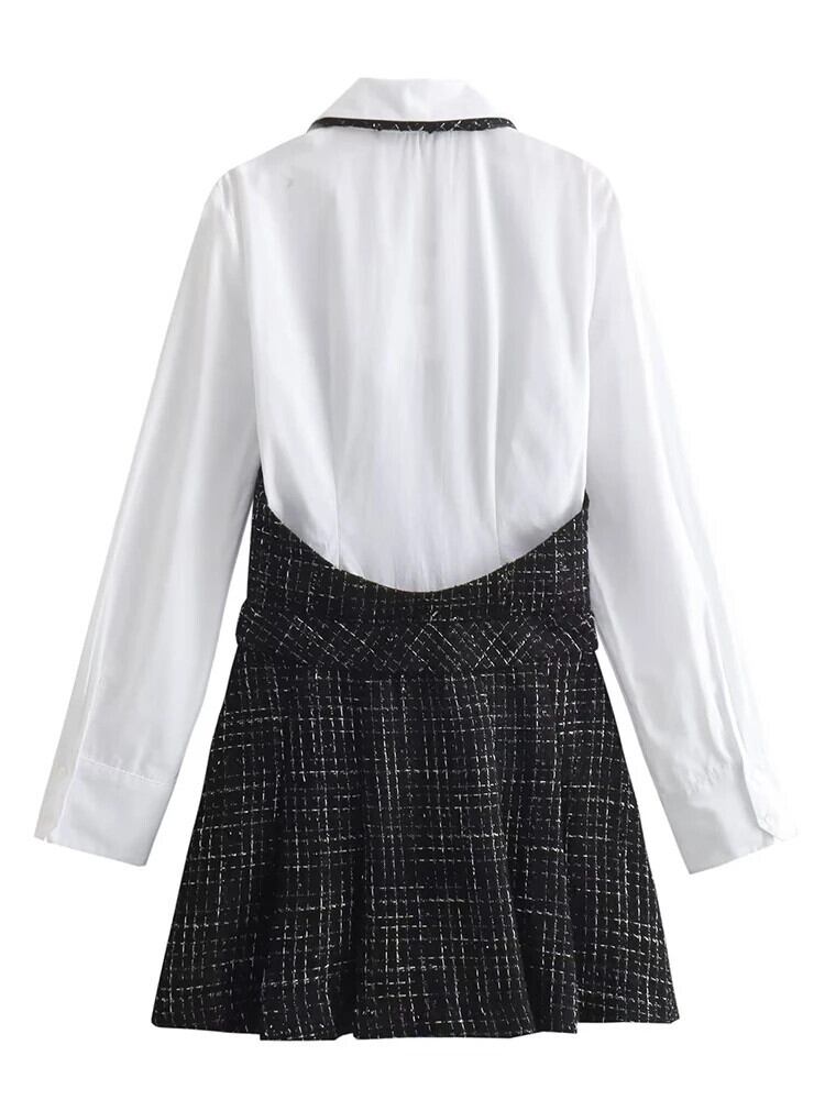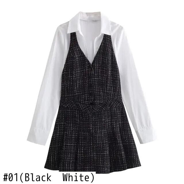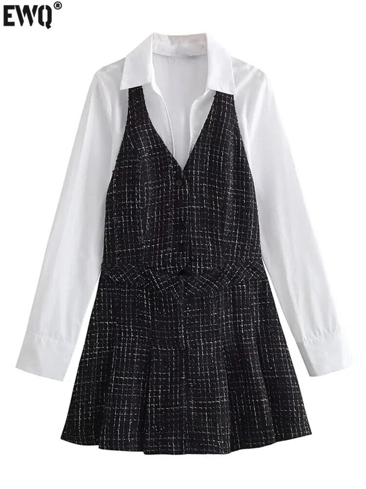 [EWQ] ヨーロピアンスタイル Clic オールマッチカラー 長袖 パッチワーク シャツワンピース 2024 春秋 オフィス 16U7121 ロング スプリング 春物 オータム 秋物 会社 学校 通勤や通学にも