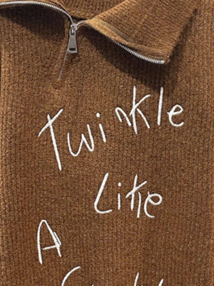 [EWQ] ルーズ ラペル ジッパー プルオーバー ニット セーター レディース レター オーバーサイズ ベーシック ニット ジャンパー 秋冬 U6879 オータム 秋物 ウィンター 冬物