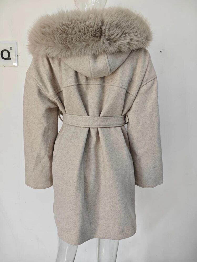 [EWQ] シック厚く暖かいコートトップ冬フェイク取り外し可能毛皮襟調節可能ウールジャケット ウィンター 冬物 アジャスタブル