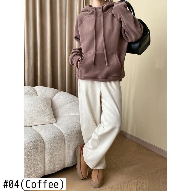 [EWQ] フード付き 巾着ポケット 両面フリース トレーナー 厚手 暖かい ゆったり オールマッチ パーカー 2024春夏 A6740 スプリング 春物 ウィンター 冬物