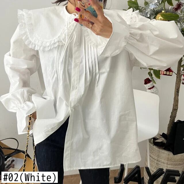 [EWQ] 甘いスタイル ドールネック パッチワーク レース プリーツ シャツ ルーズ オールマッチ フレア スリーブ トップス レディース 2024 春秋 6U7330 レッド 大人ガーリー スウィート キュート カジュアル スプリング 春物 オータム 秋物