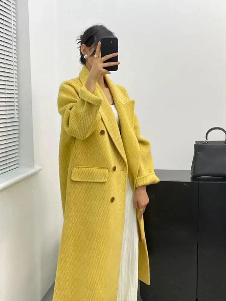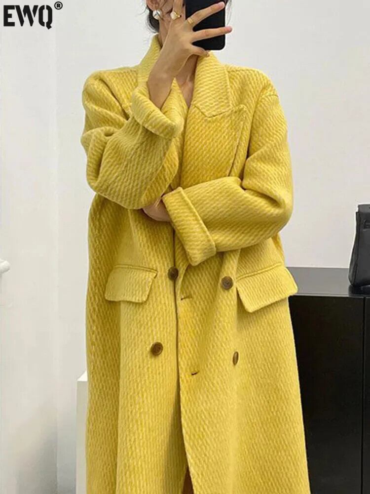[EWQ] ヨーロピアンスタイルヘリンボーン両面ウールコートオールマッチイエロージャケット 2024 秋冬 16U6738 オータム 秋物 ウィンター 冬物