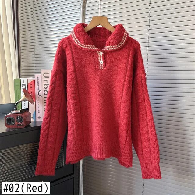[EWQ] クリスマス甘いかわいい人形襟ニットセーターニットトッププルオーバージャンパー 2024 春冬 3A66 大人ガーリー スウィート キュート カジュアル スプリング 春物 ウィンター 冬物