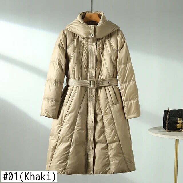 [EWQ] フード付きポケット シングルブレスト ウエストベルト レディース 暖かい中綿コート 2024 春夏 16U7015 コットン スプリング 春物 ウィンター 冬物 ハーネス