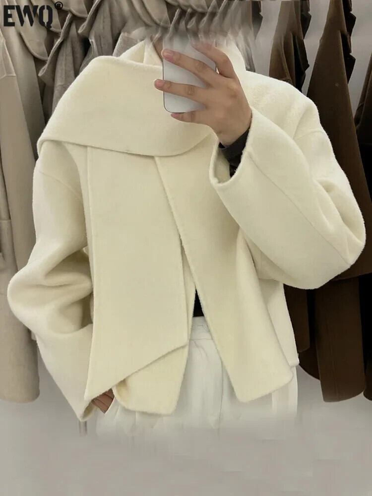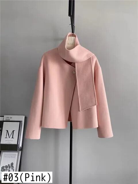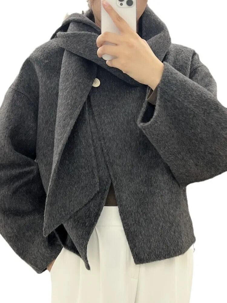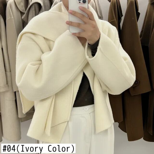 [EWQ] シングルボタン スカーフ オールマッチ マント 両面ショート ウール コート レディース 暖かい アウター 秋冬 16U6677 オータム 秋物 ウィンター 冬物