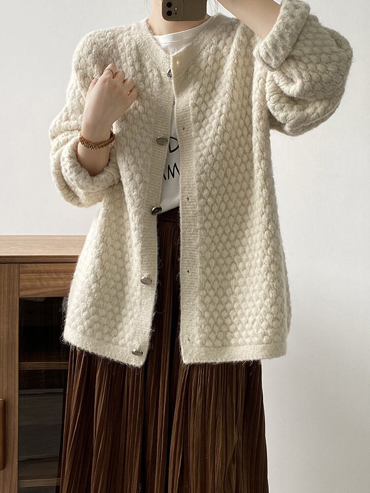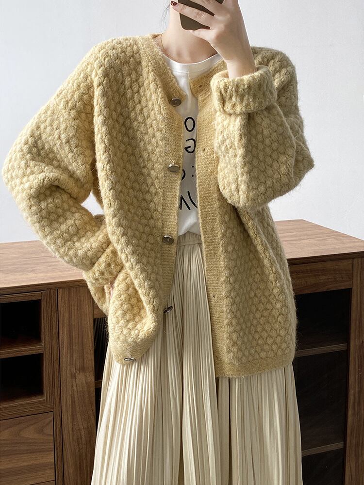 [EWQ] スタイル甘いシングルブレストチェック柄パープルセータールーズソリッドカラーニットトップ 2024 春秋 16U7258 大人ガーリー スウィート キュート カジュアル スプリング 春物 オータム 秋物