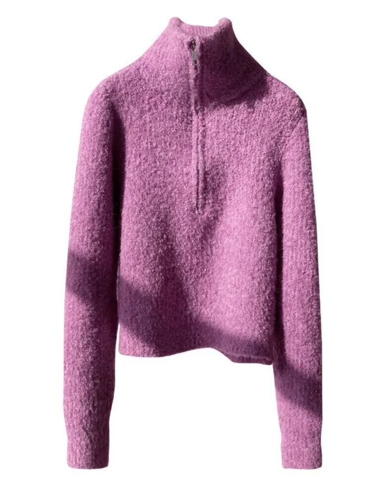 [EWQ] スタイルソリッドカラージッパーラペルニットセーターコーヒールーズトップ 2024 春秋 16U7279 レッド スプリング 春物 オータム 秋物