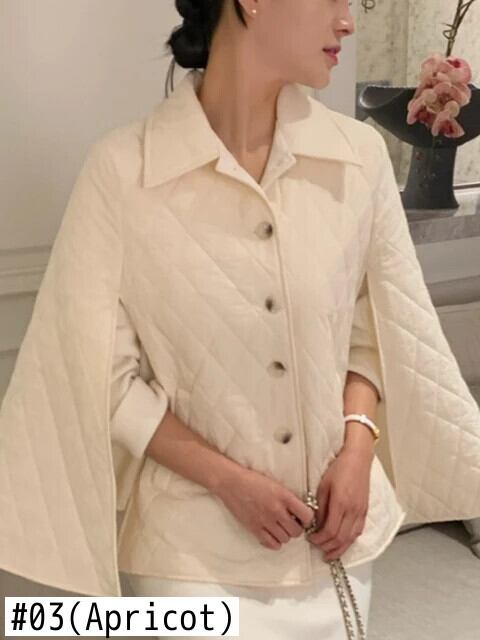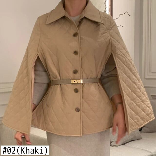 [EWQ] 韓国シックラペルシングルブレストキルティングチェック柄ケープコート長袖綿パッド入りジャケット秋冬 16U6803 ロング コットン オータム 秋物 ウィンター 冬物