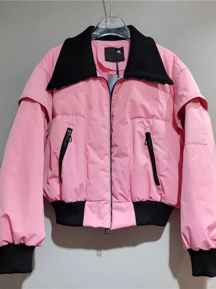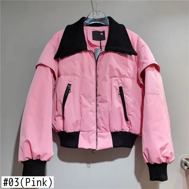 [EWQ] レジャーカラーブロックジッパーポインテッドネック作業ダウンコットンジャケット 2024 春冬 16U7001 スプリング 春物 ウィンター 冬物
