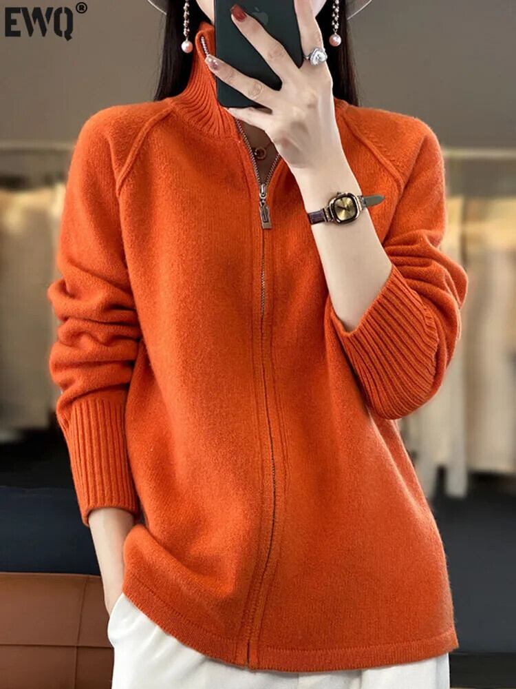 [EWQ] レディース カーディガン ベーシック ニット セーター ハーフ タートルネック ジッパー 無地 ニット ジャケット 秋冬 16U6833 オータム 秋物 ウィンター 冬物 ソリッドカラー