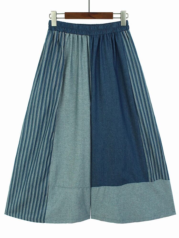 [EWQ] コントラストストライプパッチワークワイドレッグパンツ ゆったり大きいサイズ 劇団レディース 2024春夏 16U7212 スプリング 春物 ウィンター 冬物 ワイドパンツ