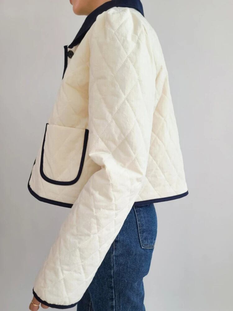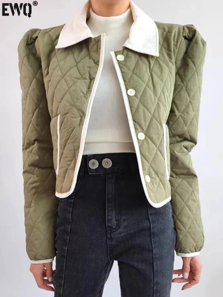 [EWQ] コントラストカラー ラペル シングルブレスト アーガイル コットン コート 長袖 ショート ジャケット 2024 秋 23A4850 ロング オータム 秋物
