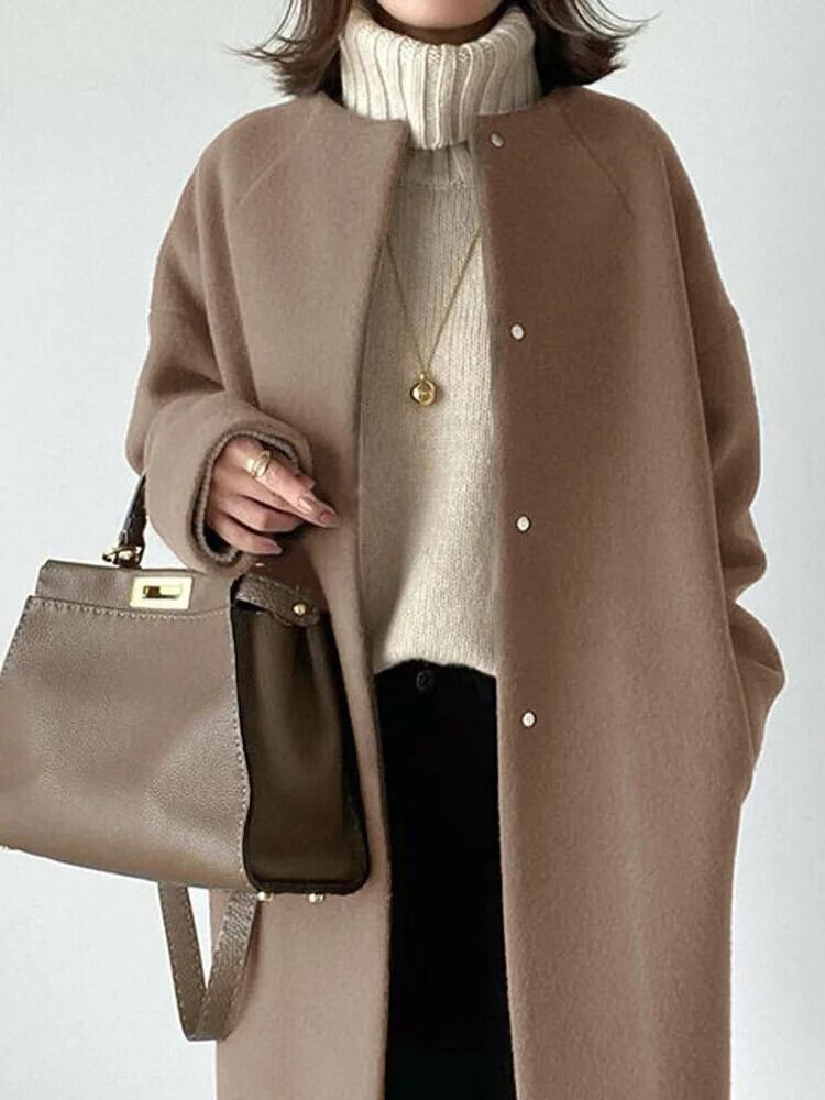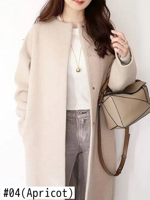 [EWQ] 気質無地 O ネック シングルブレスト レディース ウール コート ポケット 厚手 暖かい アウター 秋冬 16U6845 オータム 秋物 ウィンター 冬物 Oネック ソリッドカラー