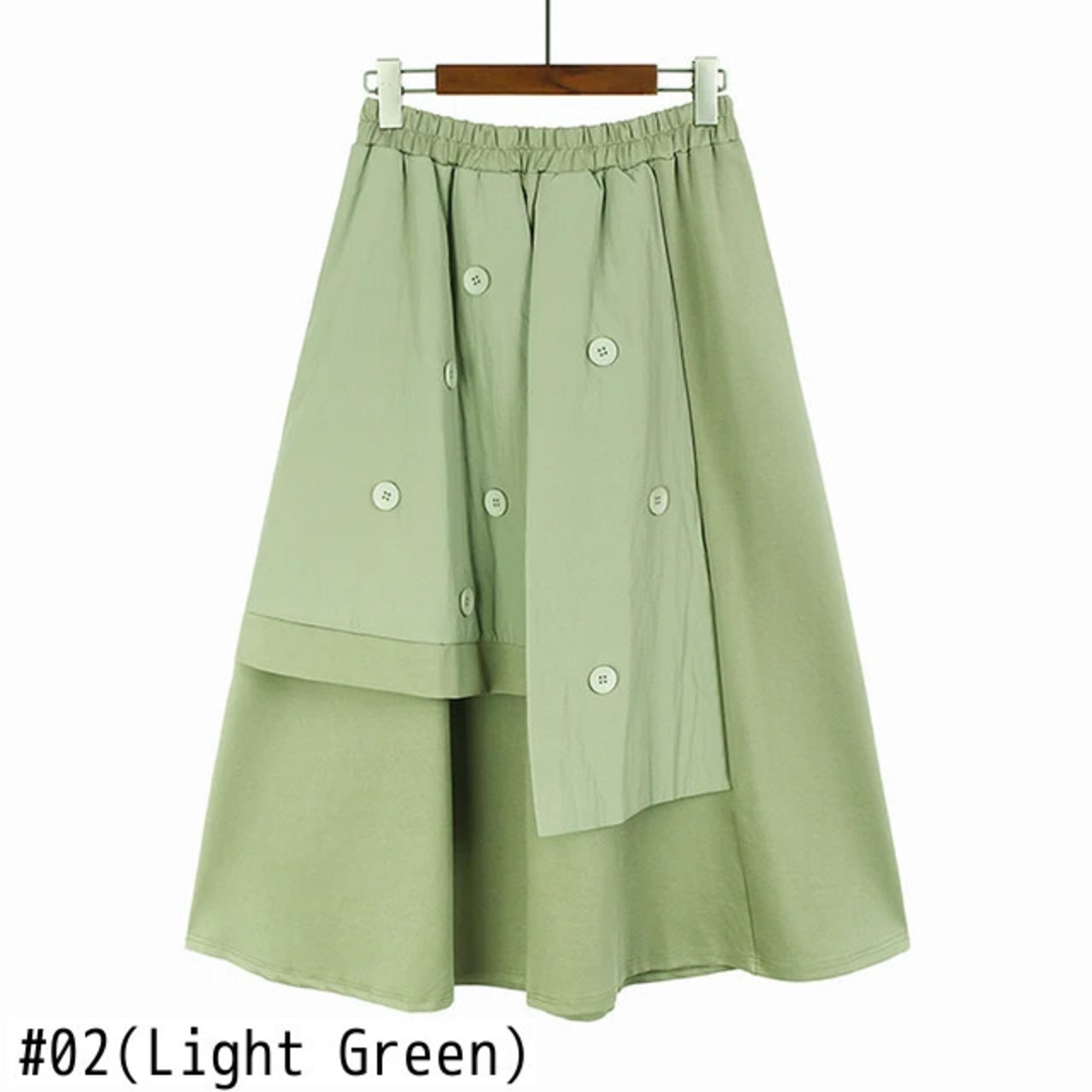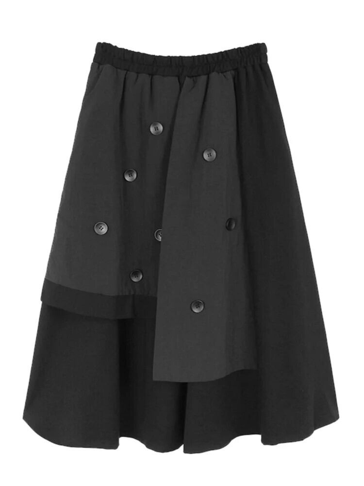 [EWQ] 不規則パッチワークボタンスカート肥厚ルーズオールマッチミドル丈 A ラインスカート 2024 春冬 U7182 スプリング 春物 ウィンター 冬物 Aライン