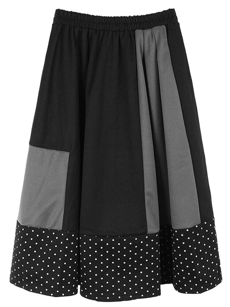 [EWQ] シックコントラストカラーパッチワーク弾性ウエストスカートオールマッチビッグサイズ水玉スカート 2024 春秋 16U7198 エラスティック 伸縮 スプリング 春物 オータム 秋物